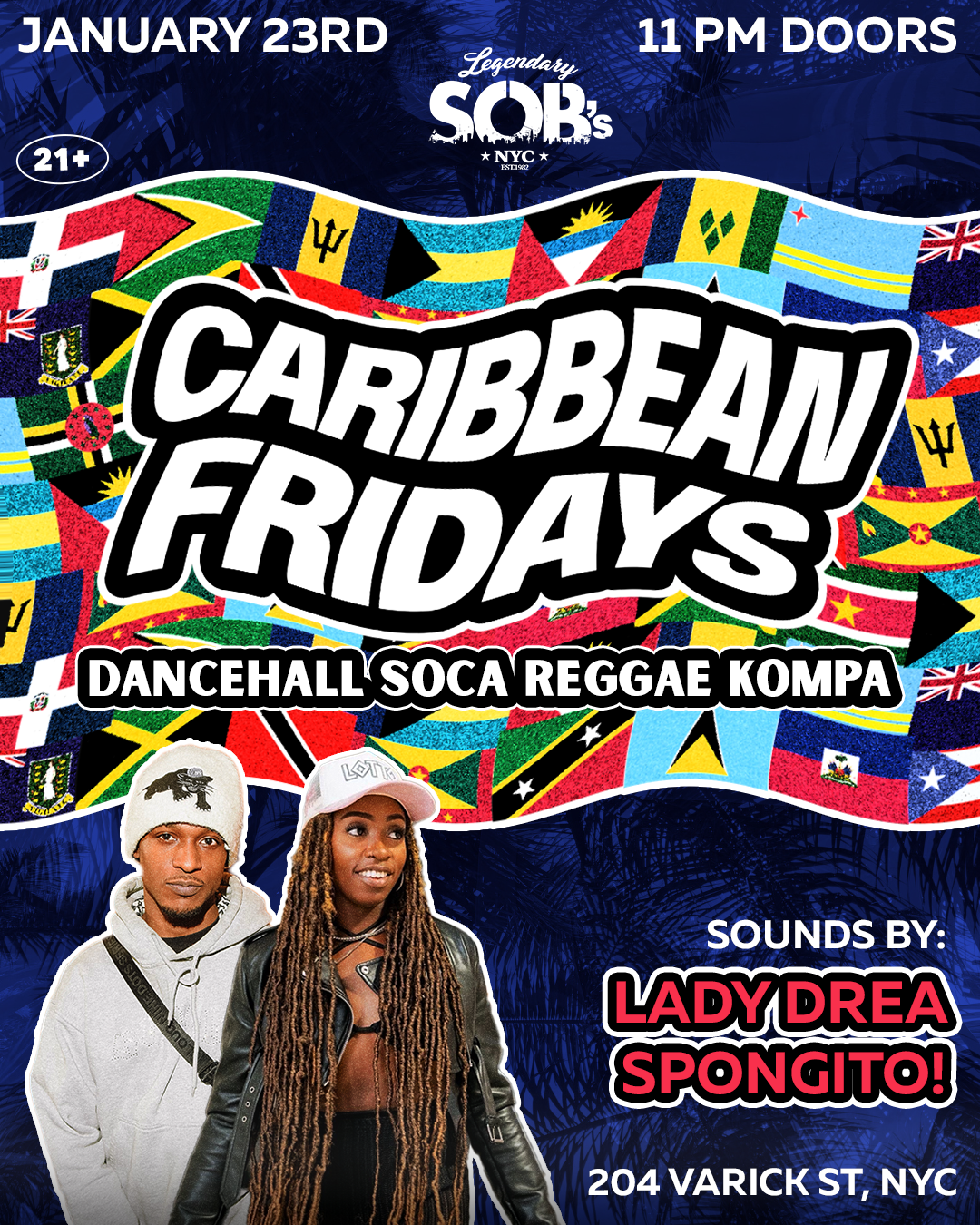 NYC’s original Caribbean Fridays Party – only at SOB’s! Soca, dancehall, reggae, kompa, & afro-caribbean vibes all night.
