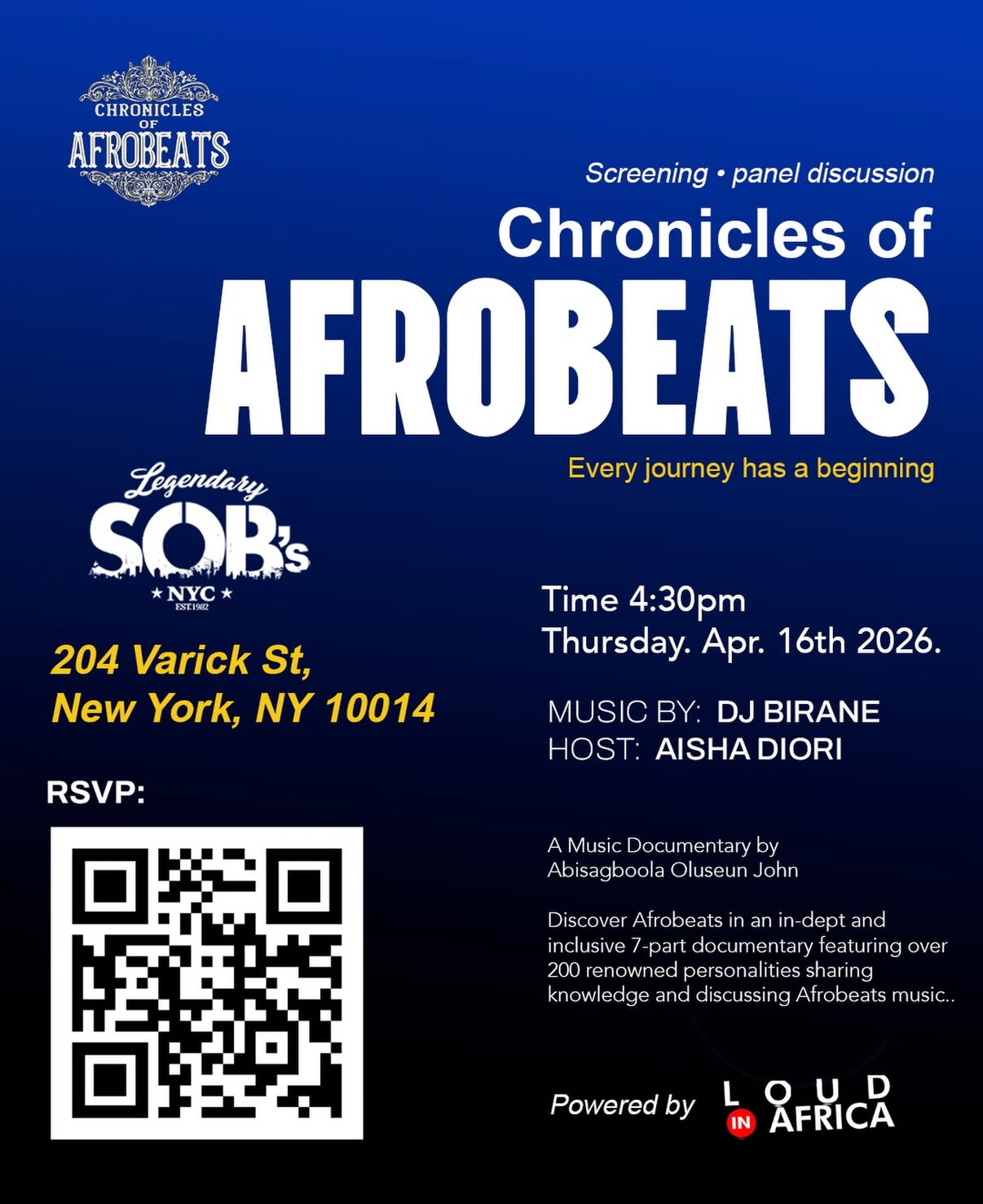 Experience a special screening of Chronicles of Afrobeats followed by an engaging panel discussion exploring the journey, impact, and future of Afrobeats.
