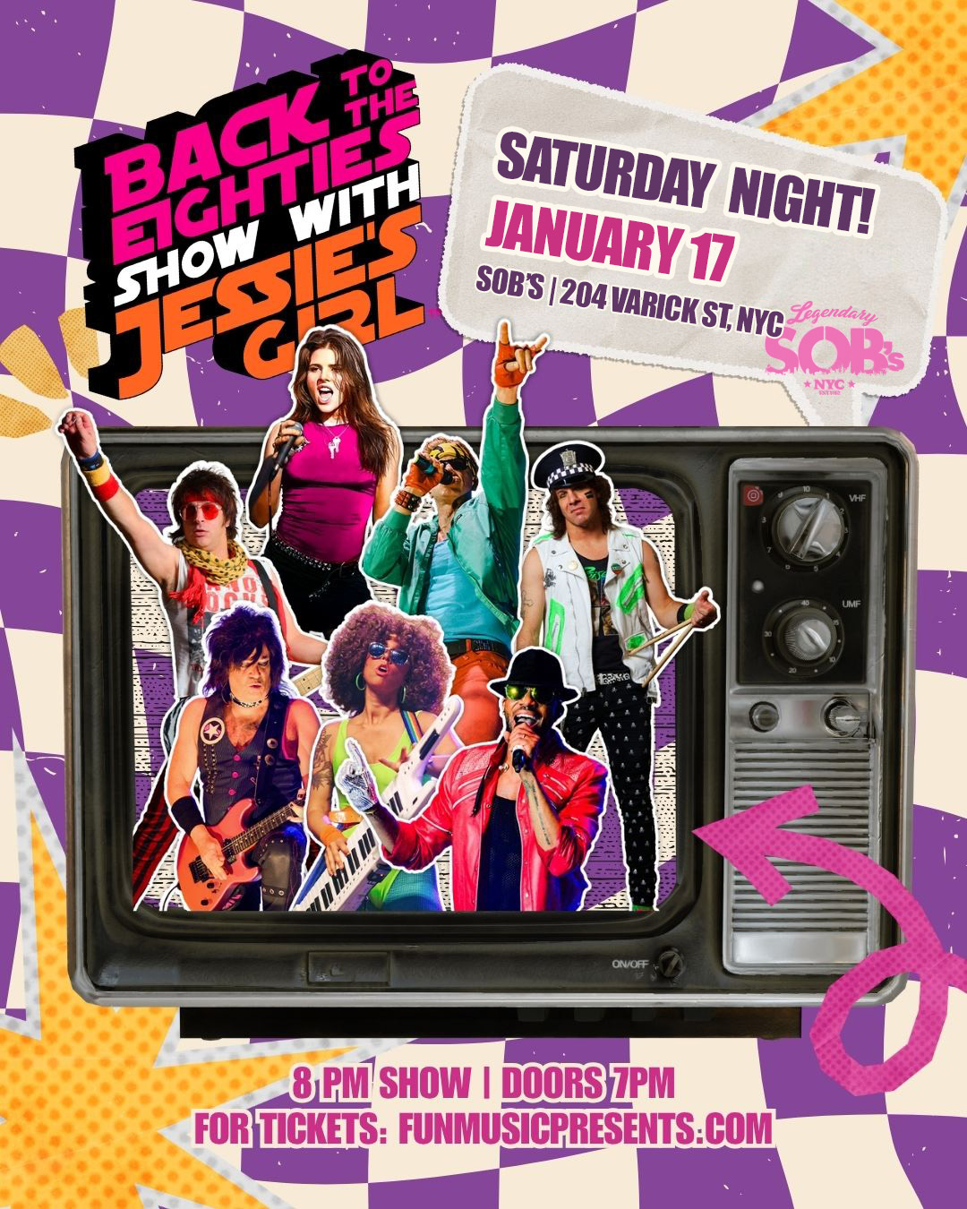 Jessie’s Girl’s primary line-up includes a team of NYC’s top rock and pop vocalists: Destinee Monroe, Jerome Bell-Bastien, and Mark Rinzel. They are backed by one of the tightest bands in the city comprised of 20+ year veterans of the NYC music scene: Eric Presti on guitar, Drew Mortali on bass, Michael Maenza on drums, and Karlee Bloom on keys and keytar. Each with dozens of credits performing with authentic ‘80s icons who made the music famous to begin with!