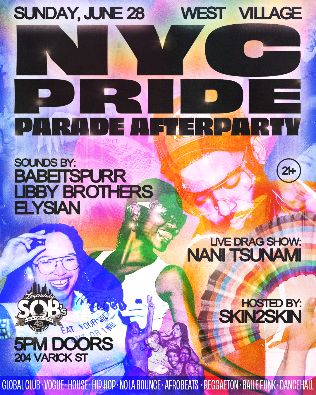 Just one block down from 6th’s Avenue Pride Parade, keep the party going at SOB’s!