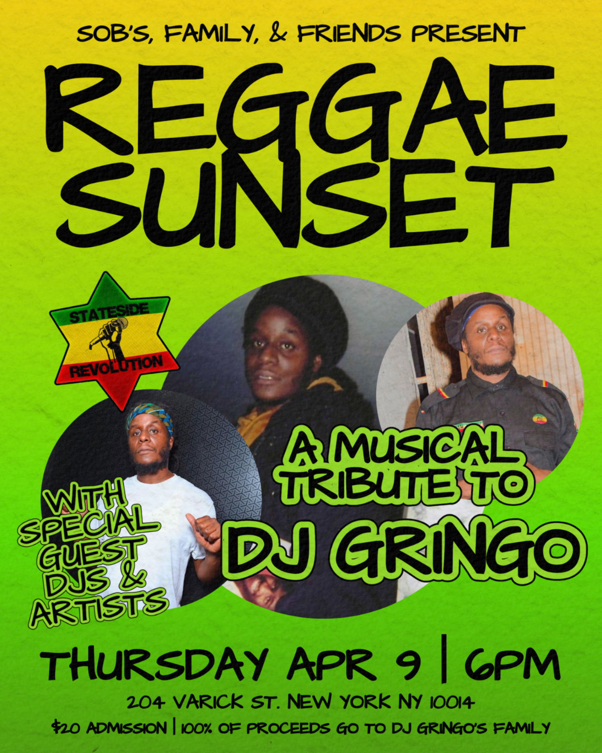 Join us as we celebrate the life and legacy of DJ Gringo: a staple of New York City’s reggae community, a beloved SOB’s family member, and a longtime resident of SOB’s Reggae Sunset series.