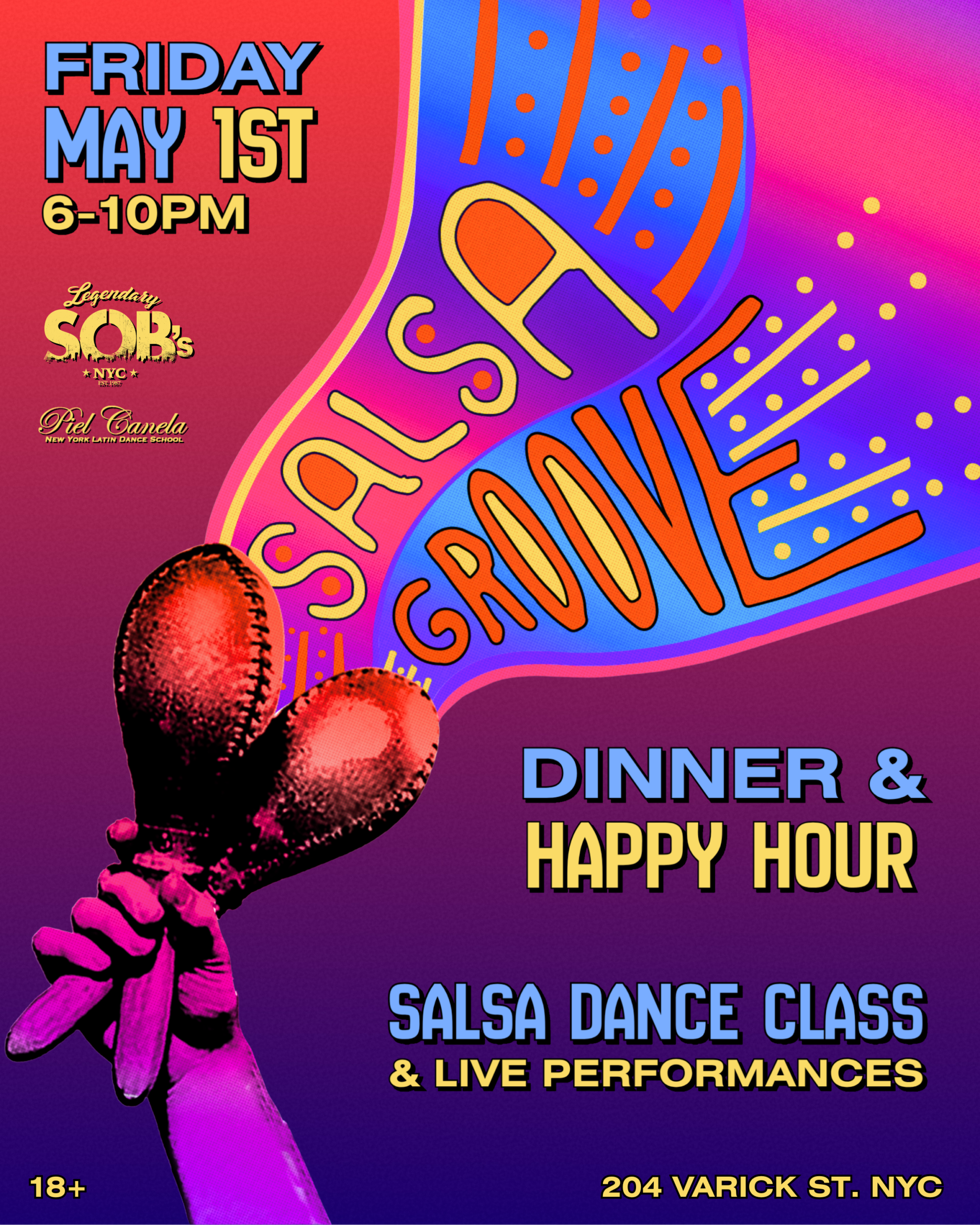 NYC’s favorite salsa night for 40+ years, once a month at SOB’s! Welcome to Salsa Groove: a dinner & drinks happy hour with salsa music, dance classes, and salsa dance performances.