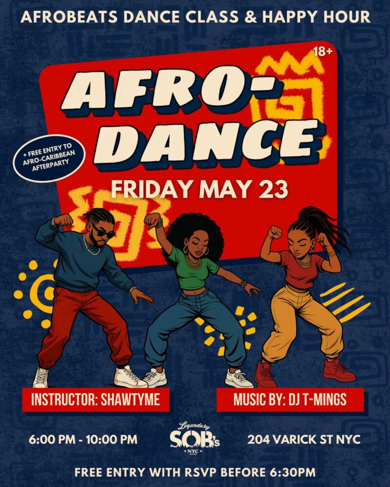 A bit about us: For over 40 years, SOB’s has been widely known as the premier venue for African music in New York City, hosting parties, concerts, happy hours, holidays, and more. Amongst the first to take the stage in the 80s were legends like Fela Kuti, Youssou N’Dour, Hugh Masekela, and Baaba Maal – followed by contemporary stars including Rema, Tems, Wizkid, Ruger, Adekunle Gold, and more.