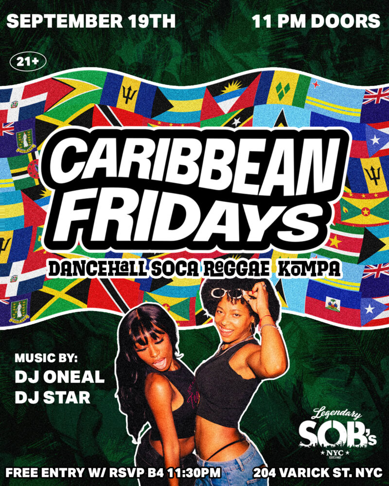 NYC’s original Caribbean Fridays Party is back! Party to soca, dancehall, reggae, kompa, afro-caribbean, & more on Fri September 19th from 11pm-late.