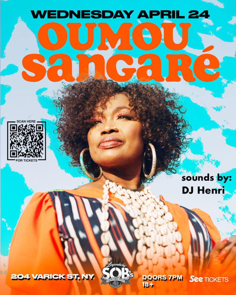 Grammy Award-winning Malian singer Oumou Sangaré takes the S.O.B.’s stage on Wednesday, April 24th. Grab a bite to eat and enjoy a night of authentic Wassoulou music! Table service is available.